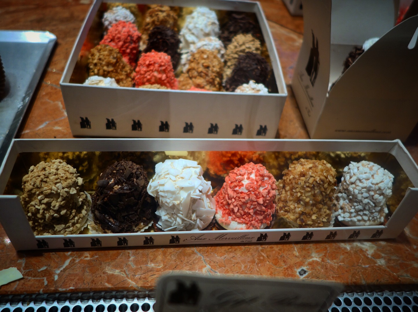Merverilleux, pronounced mair-vey-UH, is basically cream sandwiched between 2 small meringue cookies and encased in a sprinkling crushed meringue, or other topping depending on the variety. They have 6 versions, and with the miniatures at about 90 calories each and being gluten free (neither of which am I watching out for… but the thought was nice lol) we got one mini of each.