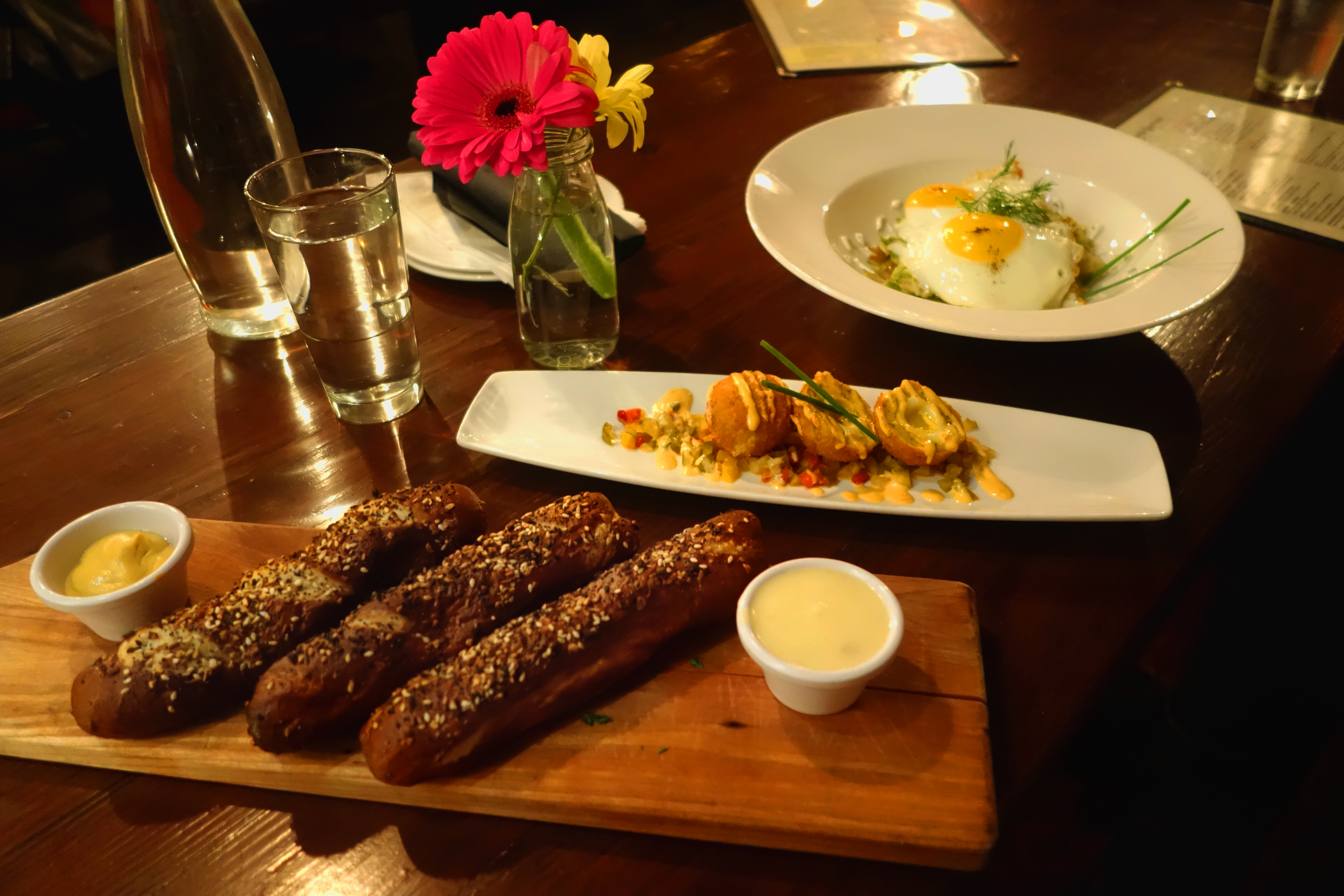 I have always wanted to try a scotch egg. This was my first time. It was pretty tasty. I am not sure if this is a traditional one or not, but the cherry pepper relish was delicious. The brussels sprout hash was very fresh and tasty. The eggs were cooked perfectly. I would’ve loved to have hot sauce with this. I plan on getting it for lunch soon and putting my own hot sauce on at work. The pretzels were soft and super flavorful. I loved the cheese dip, and the mustard was nice and tangy.